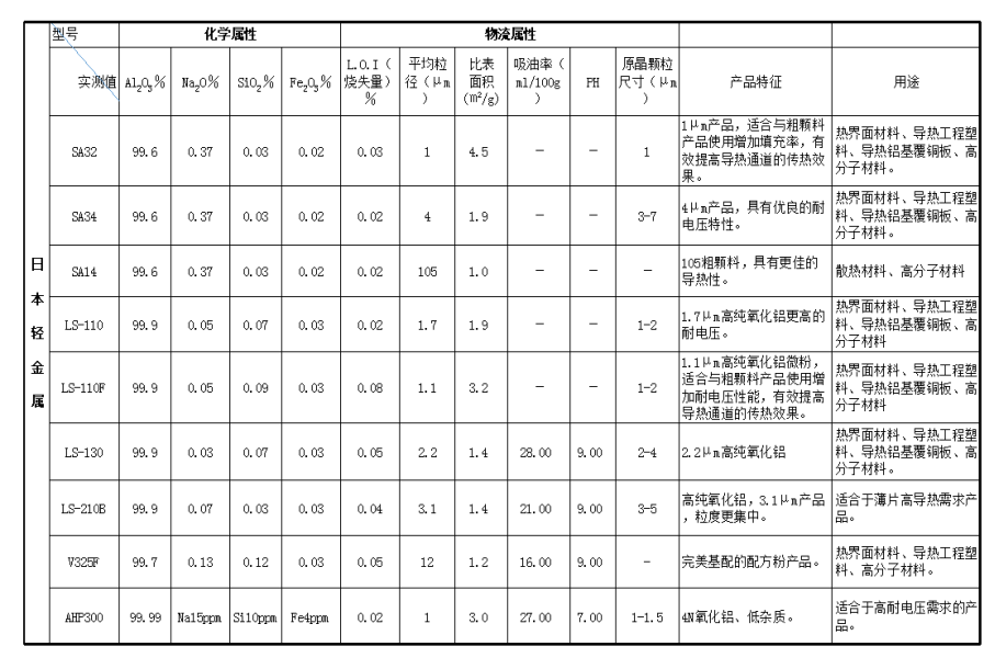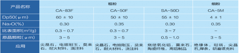按照氧化鋁產品典型特征種類清晰,應用方向明確細分: