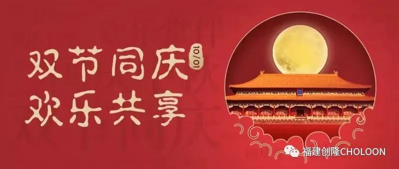“雙節”將至,福建創隆公司向全體同仁及家屬,關注、關心和支持公司發展的各界朋友致以最誠摯節日祝福和衷心的感謝,提前祝您們節日快樂,闔家幸福!