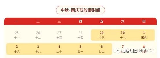 放假時間:2023年9月29日至10月6日,共8天;10月7日 (星期六) 、10月8日 (星期日) 正常上班。