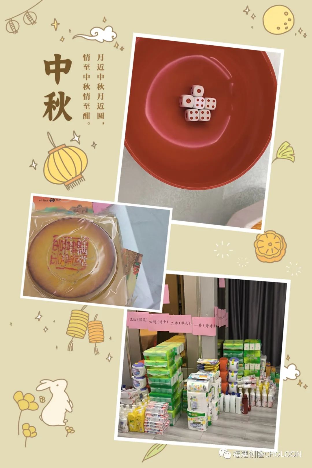 此值中秋佳節來臨之際,福建創隆于2023年9月27日晚舉辦2023年中秋節聚餐及博餅聯歡會,屆時邀請全體工作人員同聚一堂,共享團圓之夜,衷心的感謝各位員工辛勤付出,創隆的發展有您們的汗水、有大家的拼搏、有我們共同的奮斗。